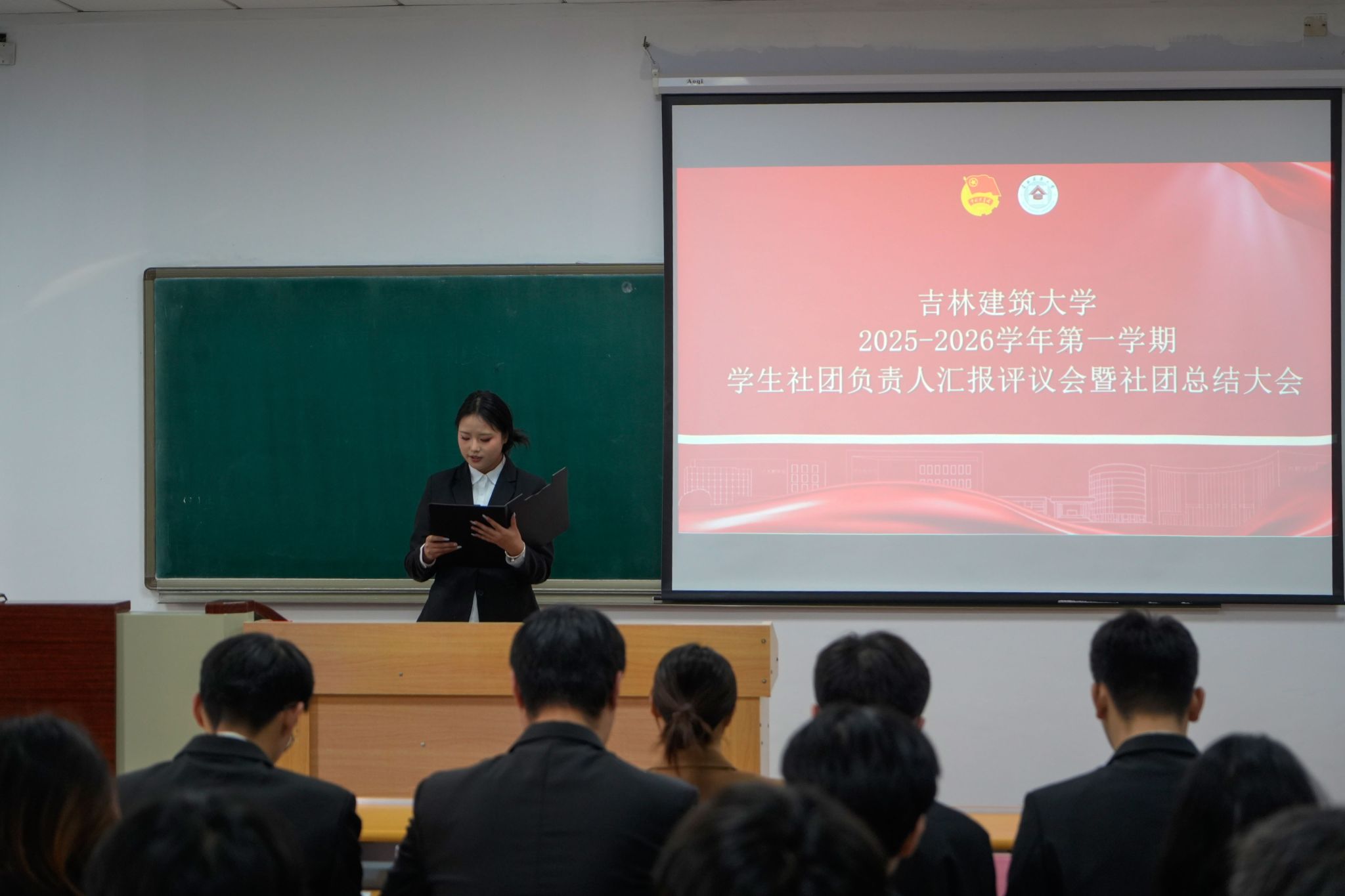 12月17日,在公共教学馆A104召开吉林建筑大学2025-2026学年第一学期学生社团负责人汇报评议会暨社团总结大会。校团委学生社团管理部部长刘斯梦,学生社团团建工作委员会全体干事和各学生社团负责人参加会议。会议由学生社团团建工作委员会学生骨干主持。