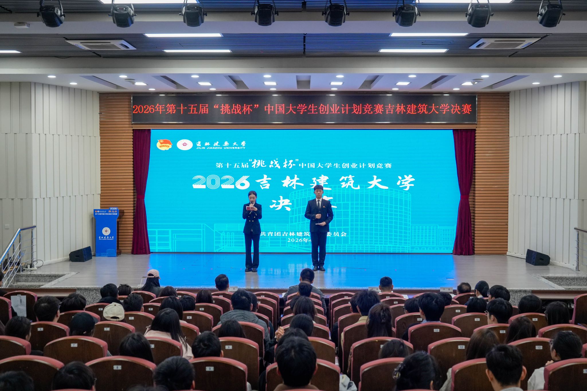4月12日,2026年第十五届“挑战杯”中国大学生创业计划竞赛校级决赛在逸夫教学馆报告厅举行。